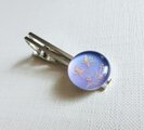 三つ葉と蝶を描いた絵を、樹脂で閉じ込めたネクタイピンです。