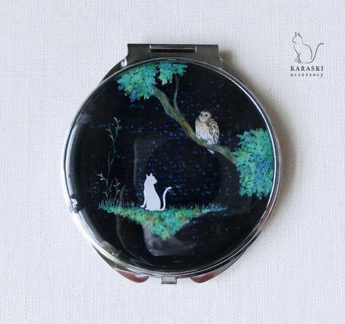 コンパクトミラー024/ネコとフクロウ