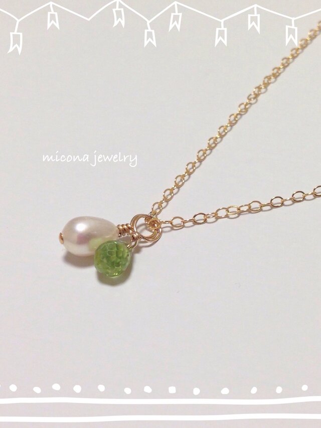 ペリドットと淡水パールのペンダントです。
