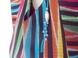 「Rang-Rang」とは、バリ語で「ジグザグ」という意味で、ストライプ地の上に大きなジグザグのイカット(絣り織り)が施された、手の込んだ生地です。