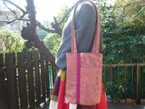 かわいい花柄の着物をほどいて作ったトートバッグです。