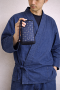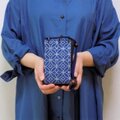 その技術を生かし、現在の日常で長く使っていただけるように素材はデニムを選び、オリジナルの髑髏(どくろ)七宝紋様を銀泥で金彩加工しましたスマホケース&小物入れです。
