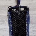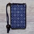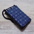 スマホケース 煙草入れ ポーチ デニム紺製 「髑髏(どくろ)七宝 銀」