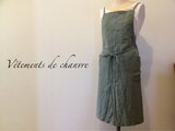90cm丈スリットバッククロスエプロン/イタリアリネン(カーキ)