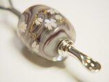 グレーと茶色のマーブル模様に金粉を散らし 桜のパーツを埋め込んだとんぼ玉を