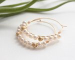 つやつや淡水ベビーパール&スターダストビーズフープピアス