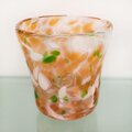 オレンジ・白・グリーンをちりばめた春色のグラスです。
