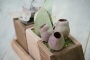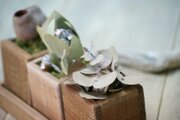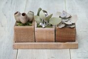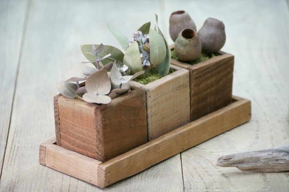 自家製ウッドプランターにナチュラルドライフラワーを詰め込みました。