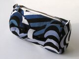 ちょっとレトロ・フューチャーな雰囲気のストライプがおしゃれなコットン地を使い、ポーチをつくりました。
