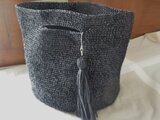 綿&アクリル半々の2種類の糸で編んだかごバックです。