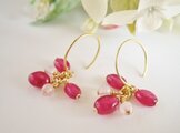 【14kgf】ルビーとローズクウォーツのふさふさピアス