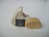 ご飯部分:志野土を手びねりでコネコネして三角に、ご飯粒を押す。
