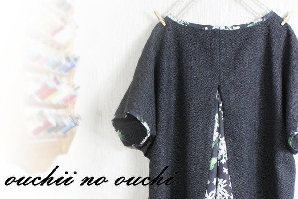 質ウール100ヘリンボーンチャコールとリバティ大人気柄Archive Lilac でドルマンプルオーバーブラウスをおつくりしました。