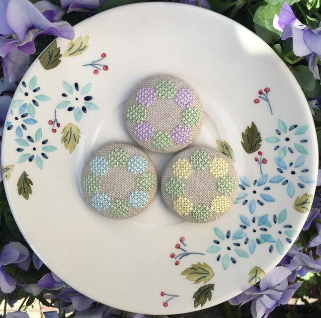 クロスステッチでひとめひとめ手縫いしたヘアゴムです。