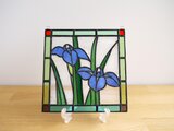 かきつばた(燕子花)のステンドグラス ミニパネルです。