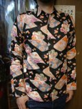 新作手作り長袖和柄シャツ(菊に和柄古文書柄)