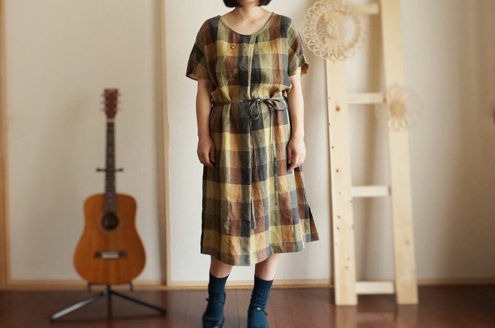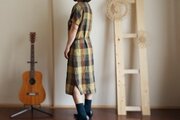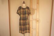 1点もの♪手刺繍入り♪リネンチェックのワンピース