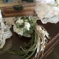 白詰草とクローバーにレースなどを合わせてクリップ付きのコサージュに仕立てました。