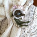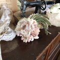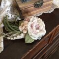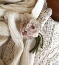 ベージュピンクに染色したミニ薔薇やデージー、すみれなどにレースなどを合わせてクリップ付きのコサージュに仕立てました。