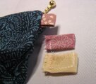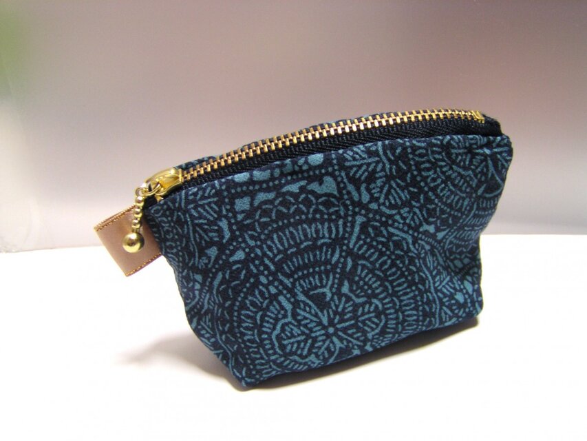 正絹藍色の染め小紋の着物と濃いピンク色無地からかわいいミニサイズのシックなポーチを作りました。