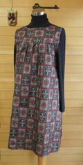 大島紬 赤と黒 角紋模様 2wayワンピース 着物リメイク