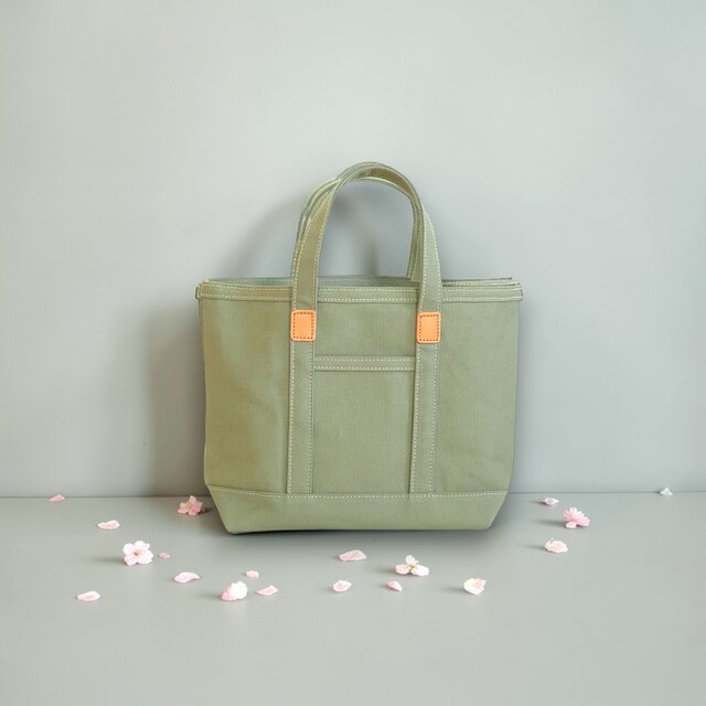 革と帆布のトートバッグS モス