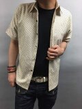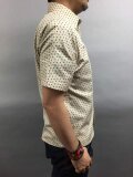 新作手作り半袖和柄シャツ(絣風豆絞り模様)