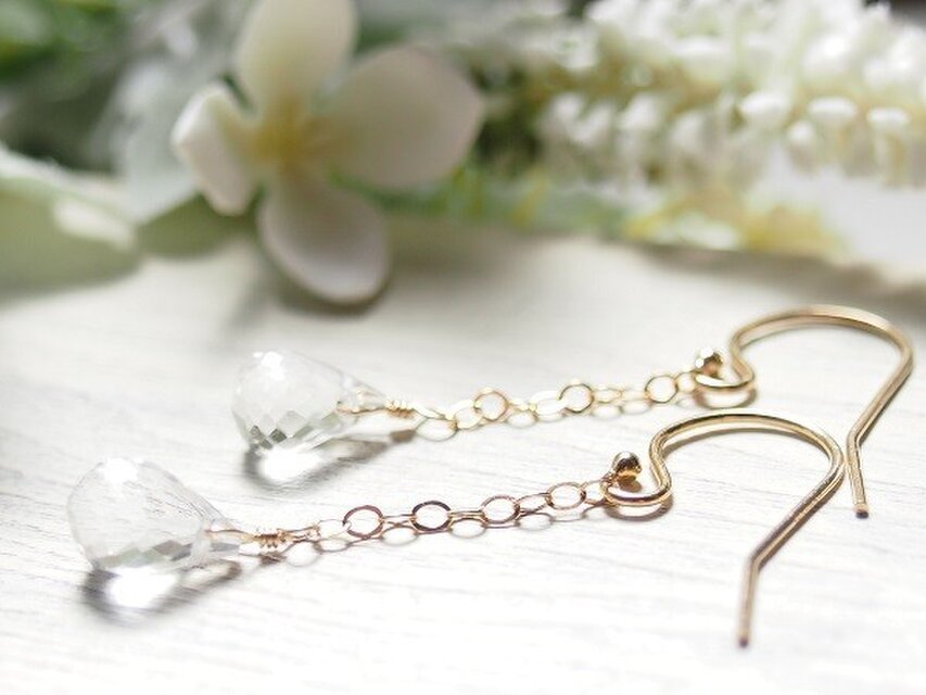 どこまでも透き通るクリスタルクォーツをシンプルなピアスに仕立てました。