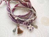 【素材】リボン…シルク100%(エッジの糸は、ポリエステル製)、アメジスト4mm、ローズクォーツ4mm、ガラスビーズ、真鍮メッキ