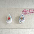 柔らかい色のフェルトに1点1点手で刺繍をし、レースを組み合わせたピアスです。