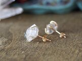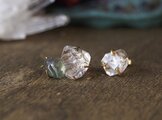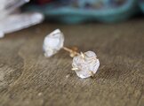 原石のダイヤモンドクォーツとブルージルコンのピアス