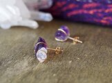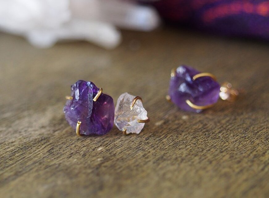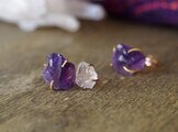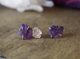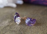 原石のアメジストとダイヤモンドクォーツのピアス w267