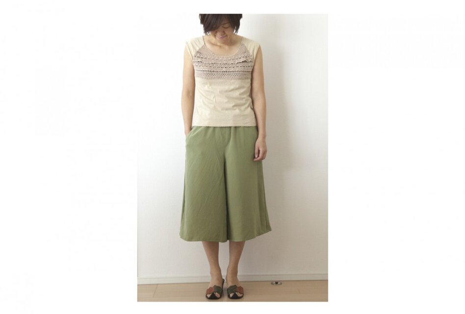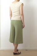 若草色の上質な紋付お召しから、スッキリシルエットのガウチョパンツを作りました。