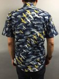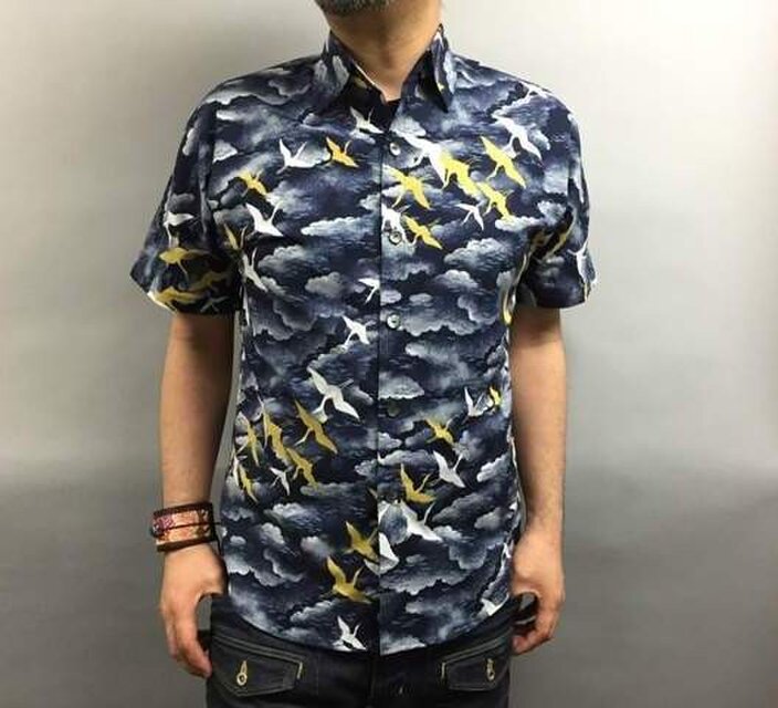 新作手作り半袖和柄シャツ(雲に鶴舞)