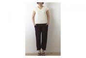 腰回りはゆったり、ウエストもゴムで楽チン♪ベルト通しを付けたので、ウエストマークすることもできます。ポケットも2つ付いています。