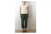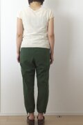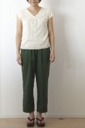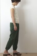 さらりとした真緑の紬のお着物から、スッキリシルエットのおしゃれモンペを作りました。