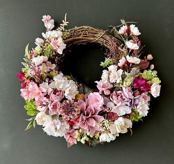 いつまでも美しいアーティフィシャルフラワー桜の華やかなリース