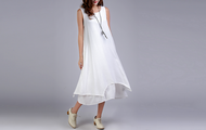 ノースリーブのコットンのワンピース到着しました。斜めに重なった裾のレースがとてもステキです。有難うございました。