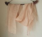 ベージュのようなオレンジのようなピンクのような、なんとも言えない優しい色のストールです。