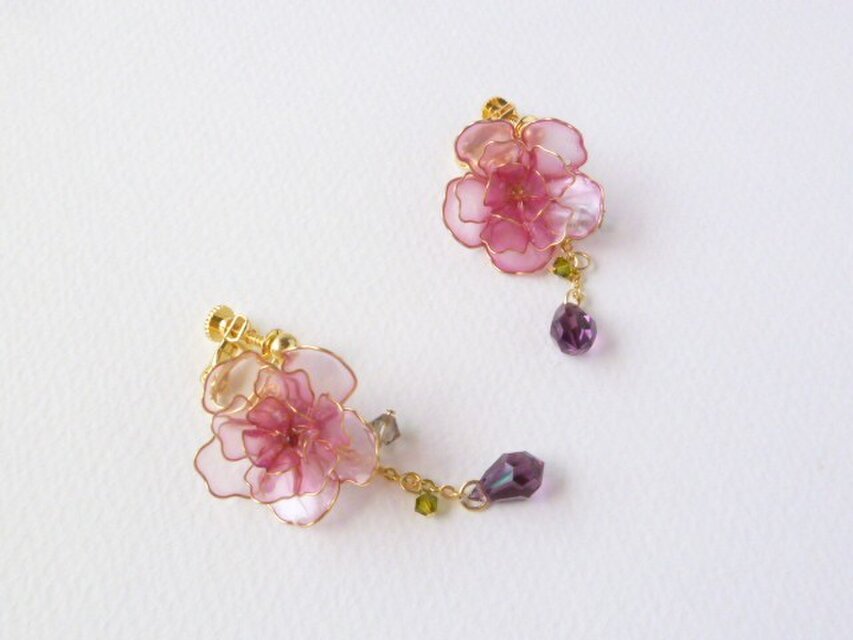 その種類の中でもさくら色の濃い八重桜をイヤリングに制作しました。