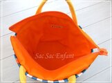 内側の生地とファスナー部分は、元気が出そうな明るいオレンジ色の無地で、