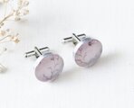 手描きの絵を樹脂で閉じ込めたカフスです。