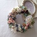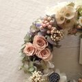 ドライアジサイとプリザーブドフラワーのアジサイをミックスしたリースです。