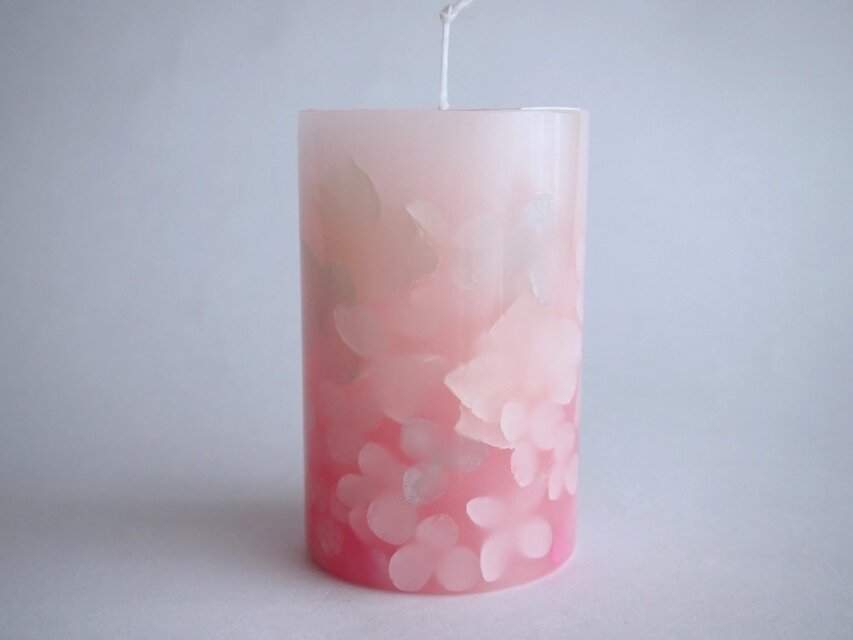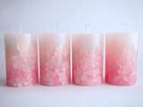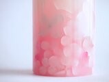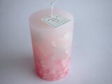薄ピンク・白・アクセントに水色のプリザーブドフラワーの紫陽花を入れ、春らしく桜をイメージした透明感・光沢のあるキャンドルです。