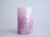 紫・赤紫・薄ピンク・白のプリザーブドフラワーの紫陽花を入れた、透明感・光沢のあるキャンドルです。