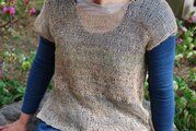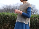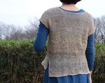 張りのある麻糸を細い棒針で編んでいますので、ニット特融の伸び感と