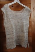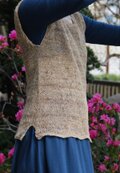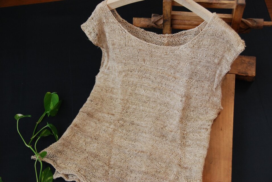 張りのある麻糸を細い棒針で編んでいますので、ニット特融の伸び感と