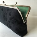 光沢のある黒いリネン生地に刺繍で黒いドット柄をデザインしました。