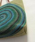 4色の綿糸を使い、こま編みでくるくる模様を作りました。