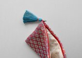 ファスナーについたタッセルはポーチに合わせ手作りしています。